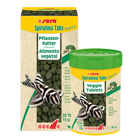 sera スピルリナタブズ Nature製品説明sera スピルリナタブズ Natureは、淡水魚・海水魚用の植物性タブレットフードです。 新しく発売された「Natureシリーズ」は人工着色料と防腐剤を含まないナチュラル志向のフードです。栄養価が高いスピルリナ藻(24%)配合で、その他にも海藻、ほうれん草、数種類のハーブなど厳選された植物性原料を主原料としています。草食性のナマズ類や卵胎生メダカ(グッピー・プラティなど)、草食性のアフリカンシクリッドの贅沢なご馳走フードです。 水槽のガラス面に指で軽く押し付けて、ガラス面に張り付けて給餌することが出来ます。低層魚には水底に落として与えてください。